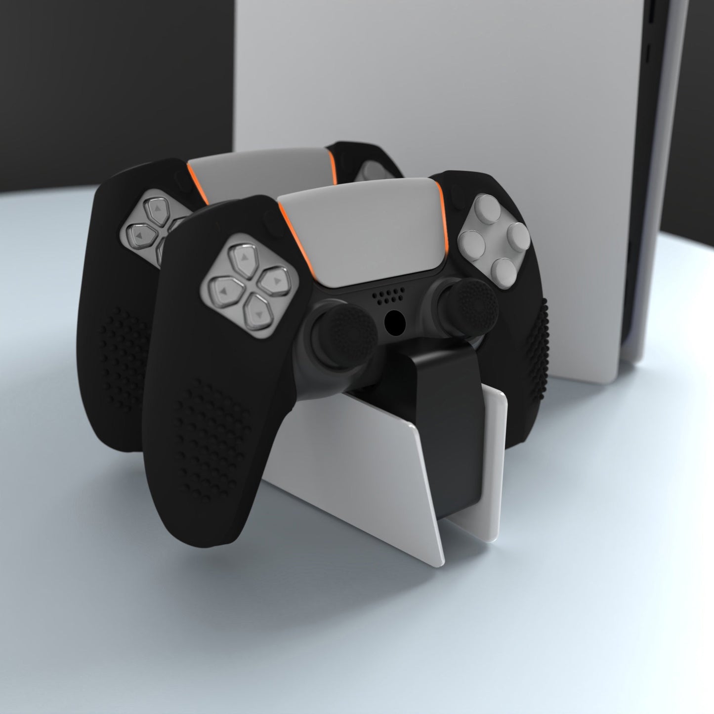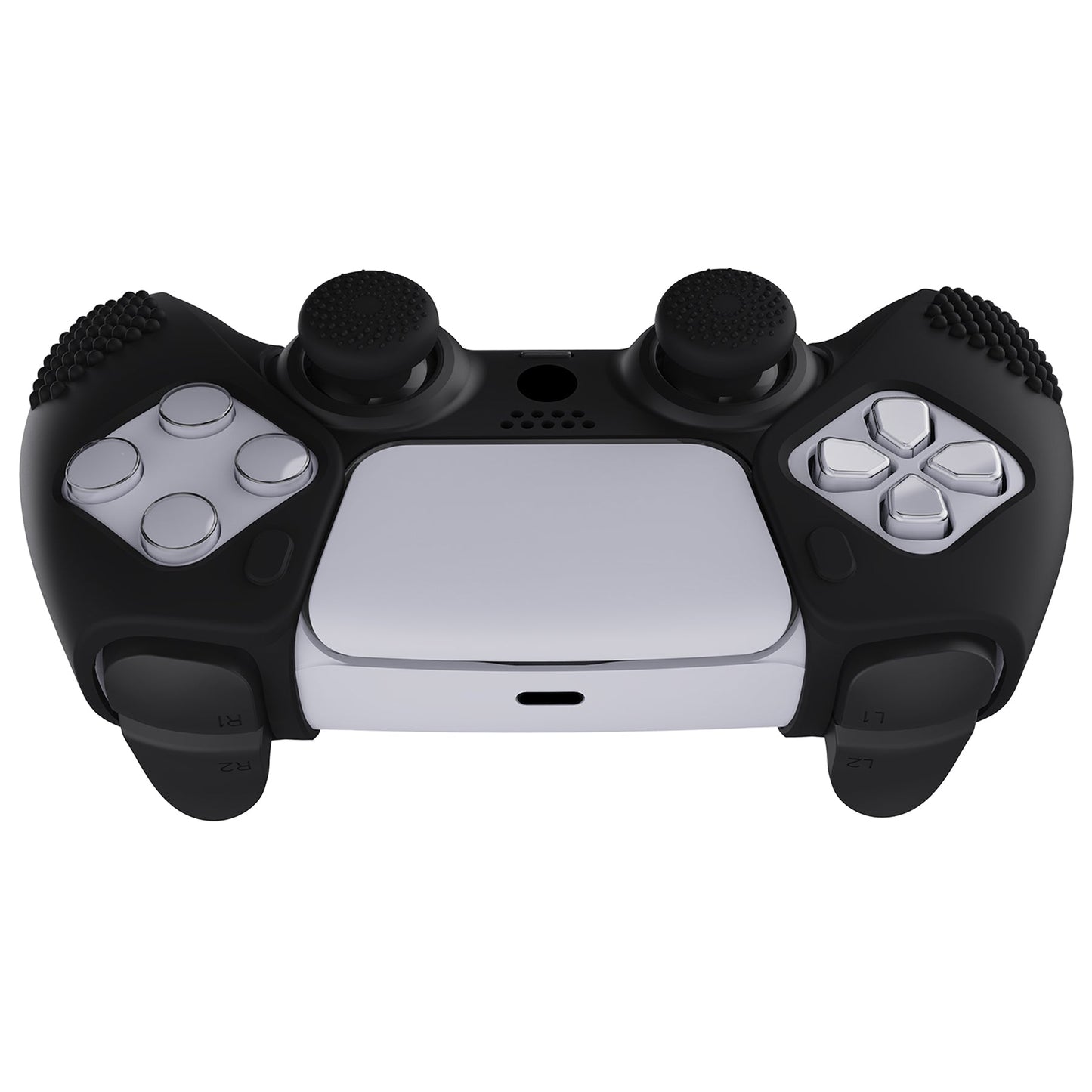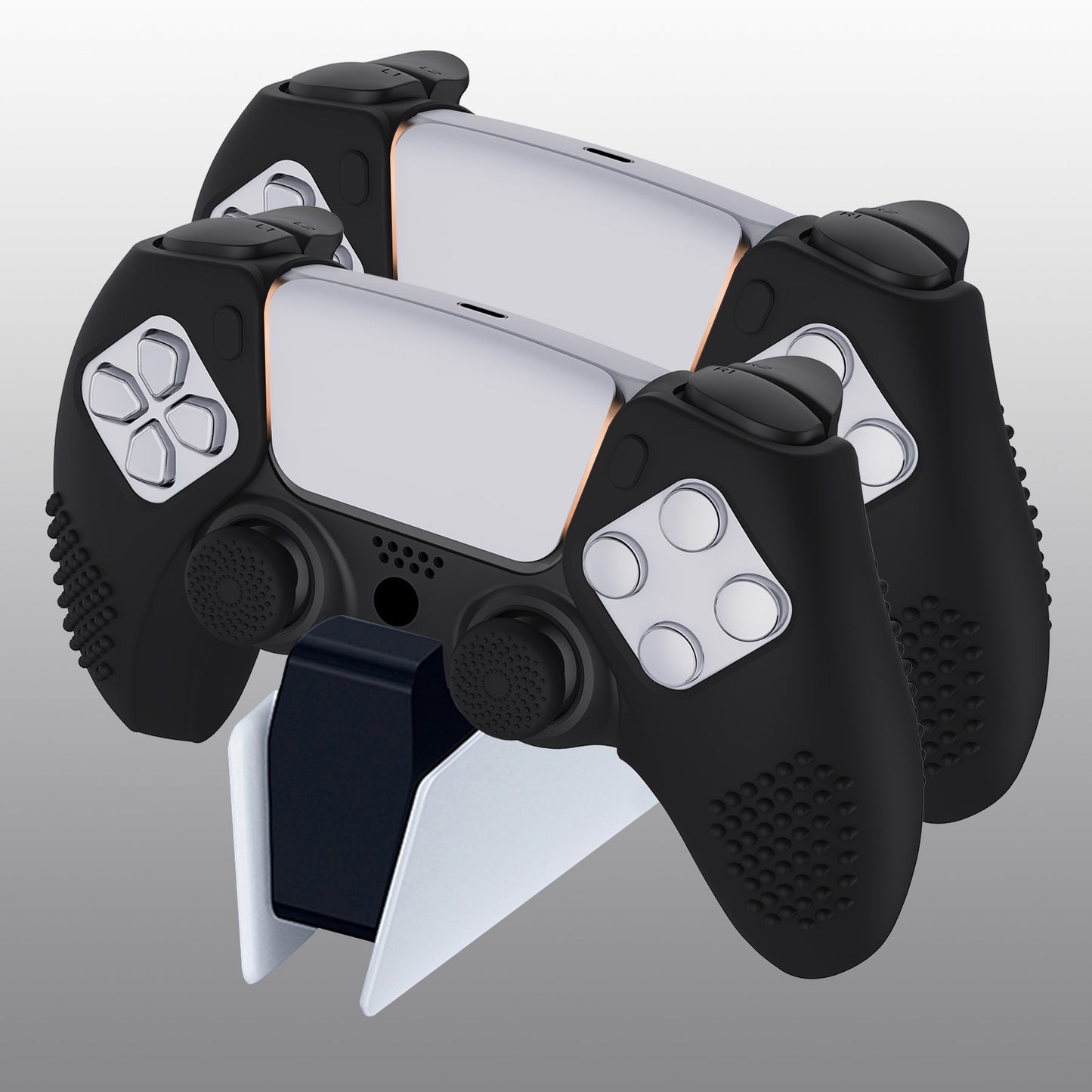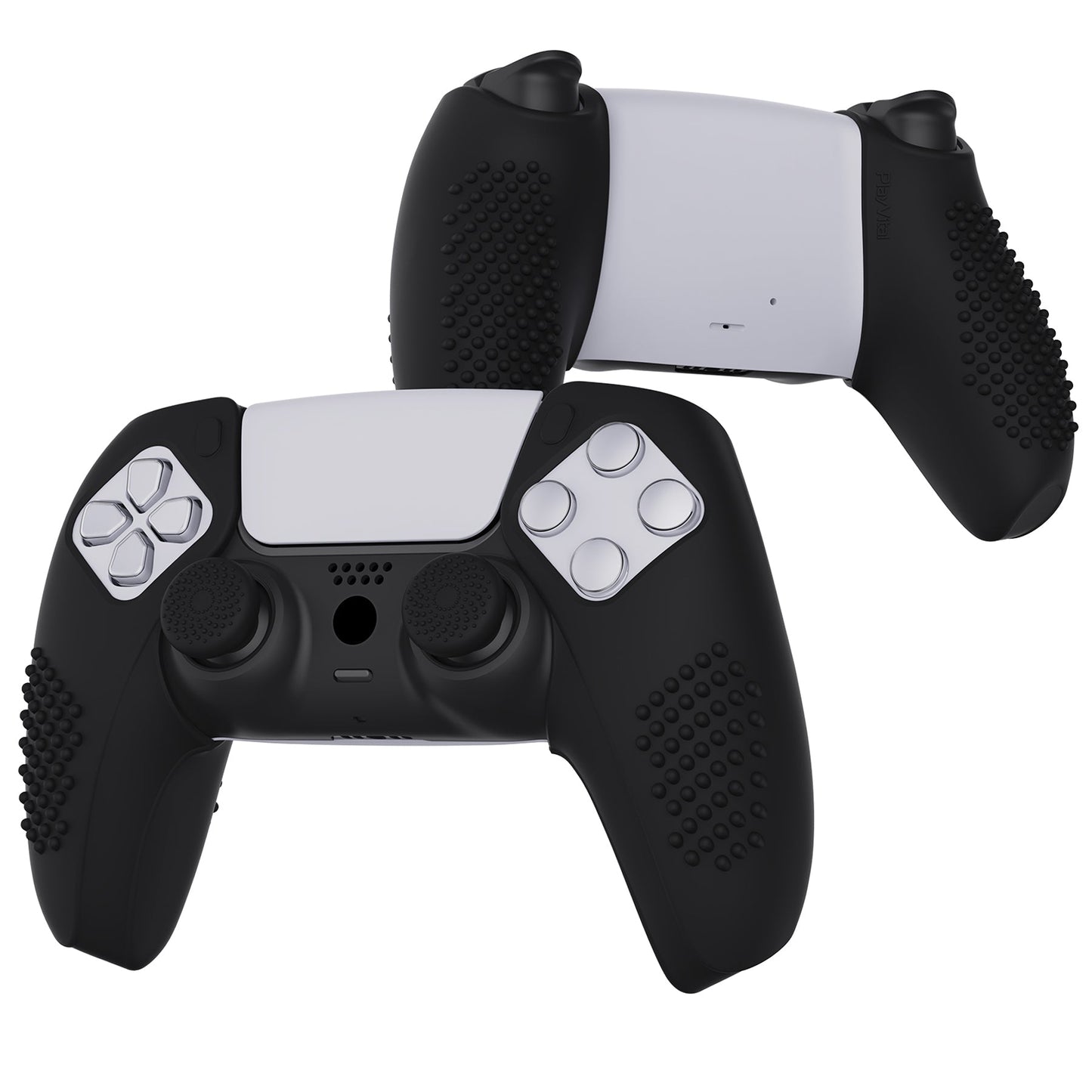 PlayVital 3D スタッズエディション 滑り止めシリコンカバースキン サムグリップキャップ付き PS5 ワイヤレスコントローラー用 充電ステーション対応【黒】