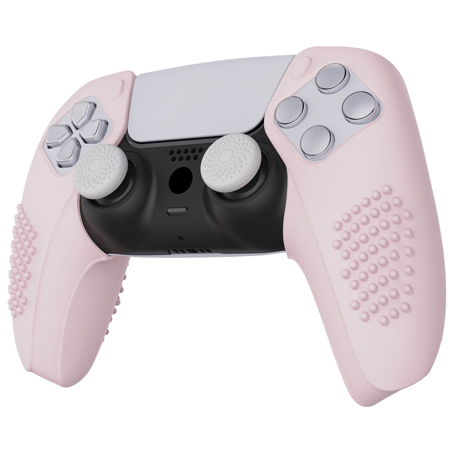 PlayVital 3D スタッズエディション 滑り止めシリコンカバースキン サムグリップキャップ付き PS5 ワイヤレスコントローラー用 充電ステーション対応 【チェリーブロッサムピンク】