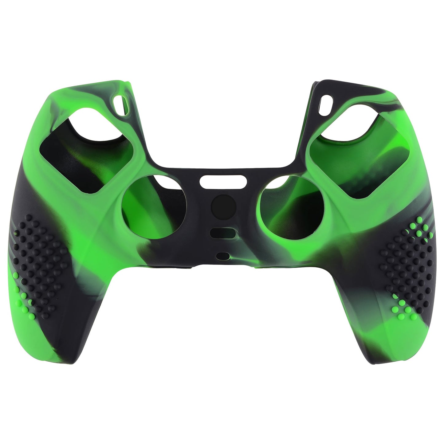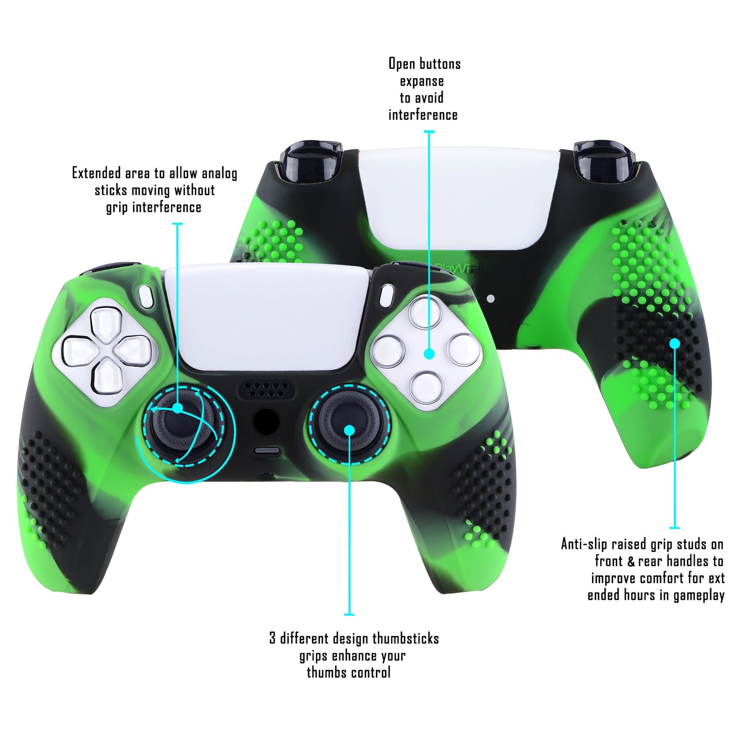 PlayVital 3D スタッズエディション 滑り止めシリコンカバースキン サムグリップキャップ付き PS5 ワイヤレスコントローラー用 【グリーン & ブラック】