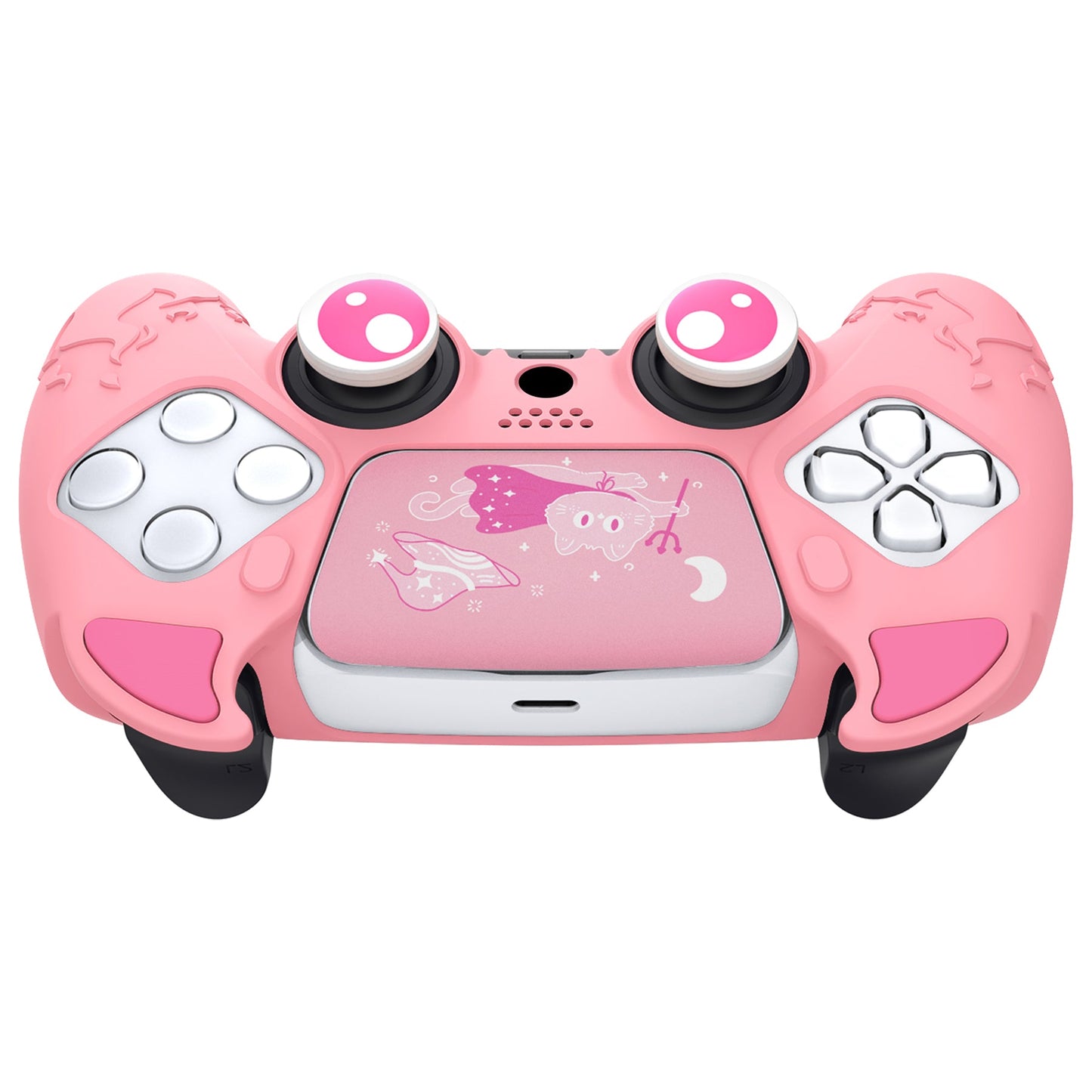 PlayVital 可愛い悪魔 ps5に対応用コントローラーカバー、サムグリップキャップ&タッチパッドステッカー付き、PS5純正品の充電スタンドに対応【ピンク】