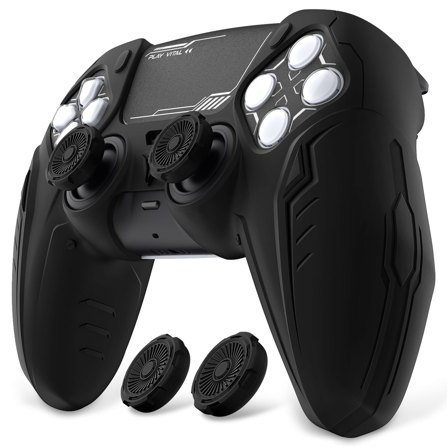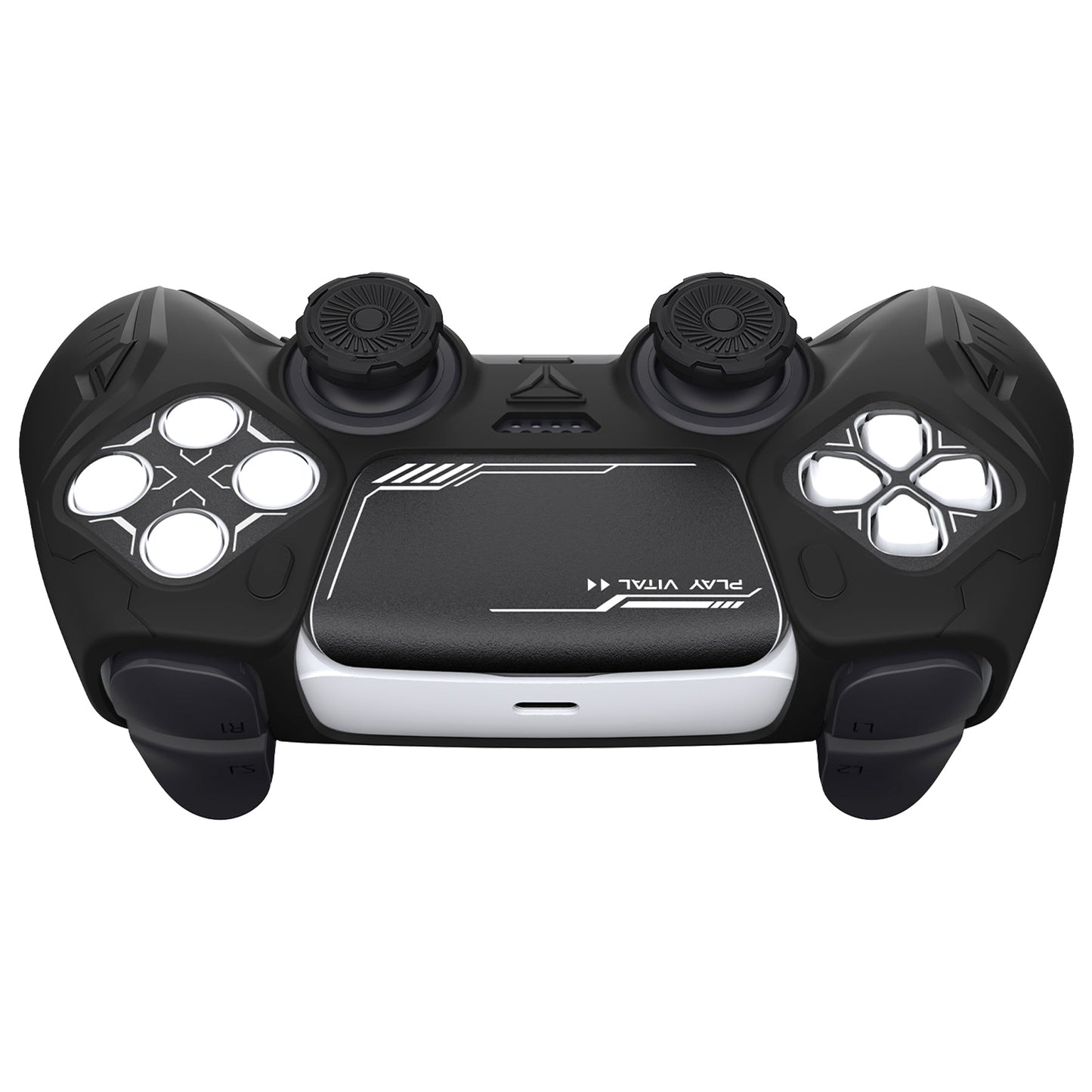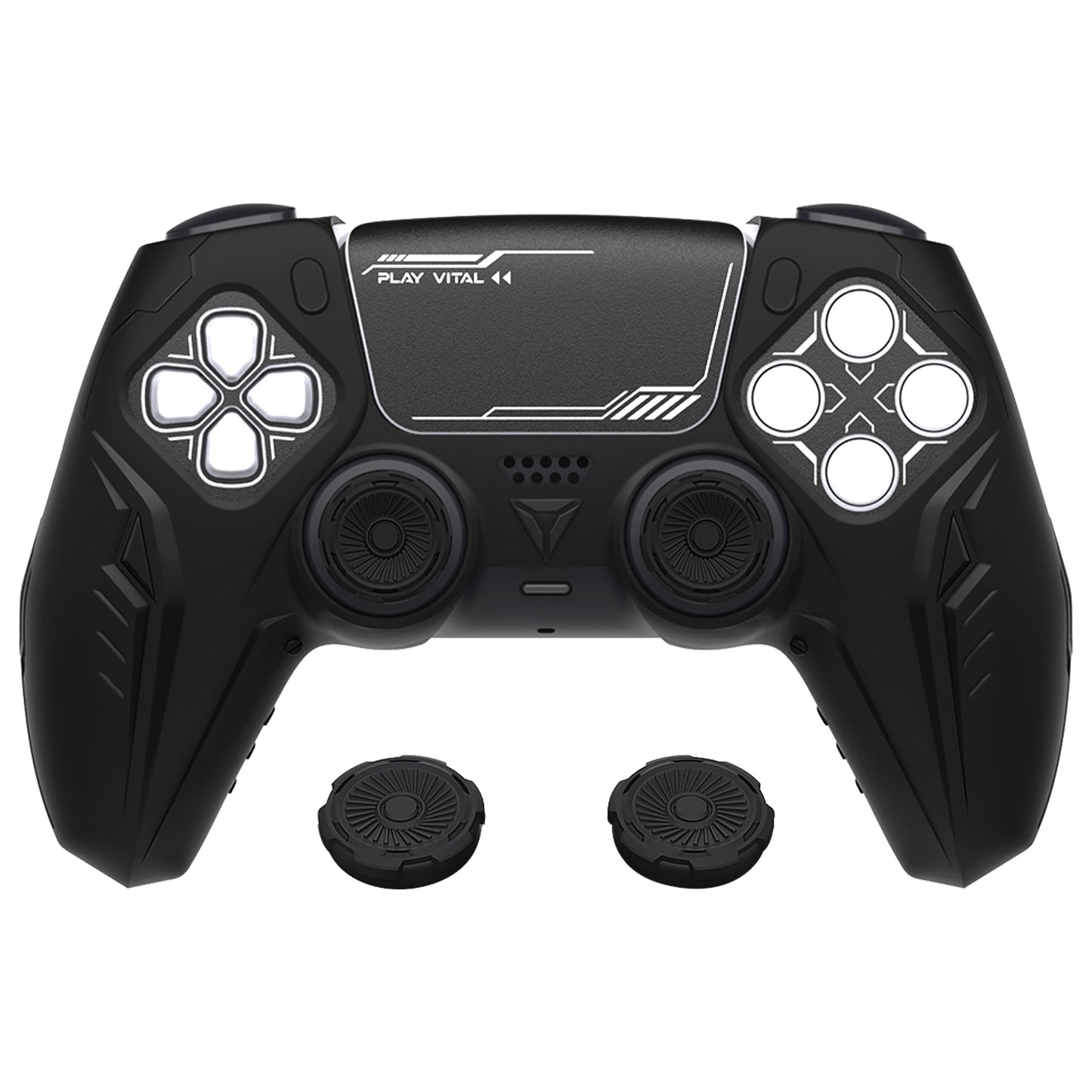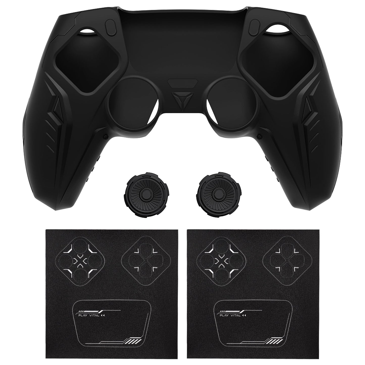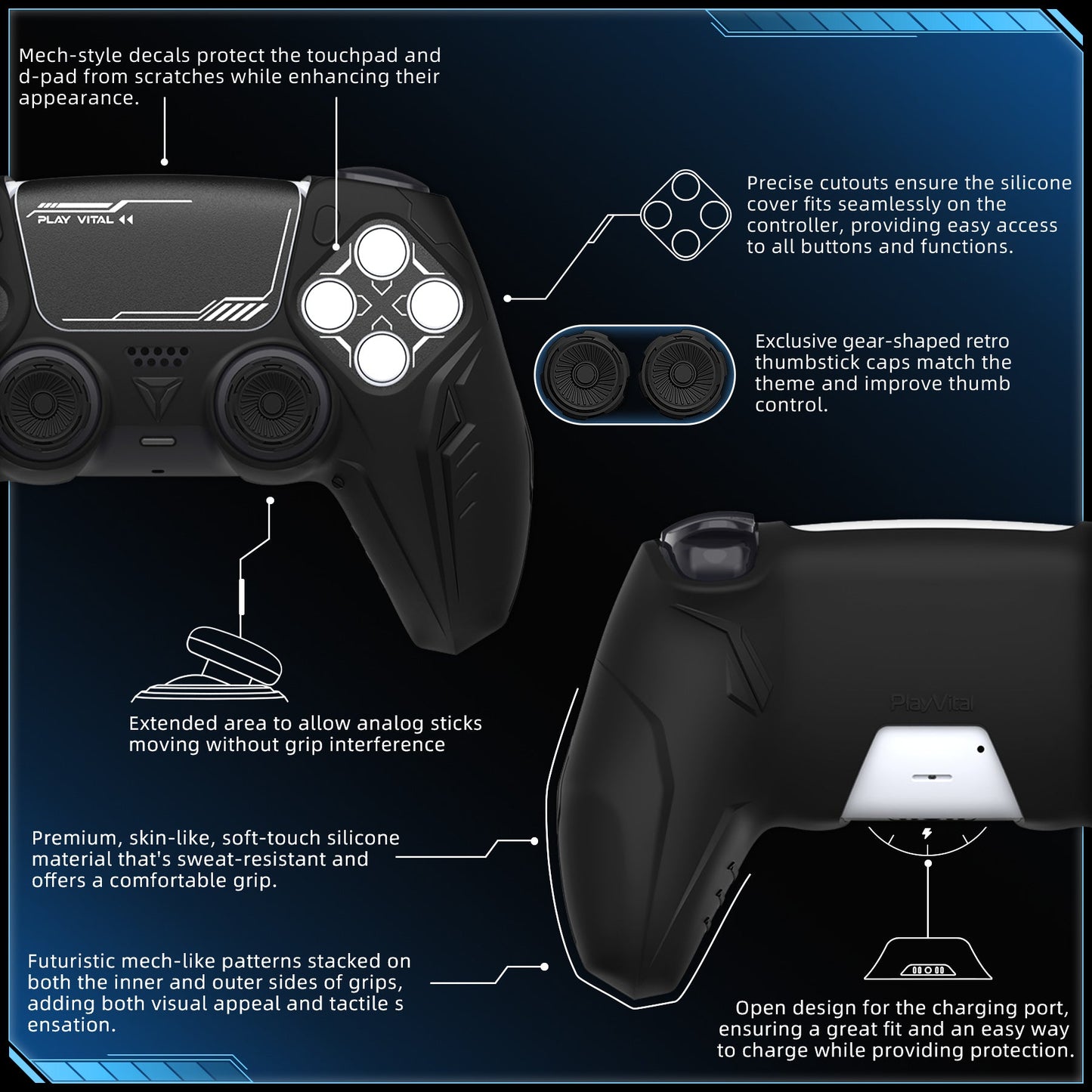 PlayVital 未来的なサイバーメカデザイン シリコングリップスキン サムグリップ付き PS5 ワイヤレスコントローラー用 PS5 公式充電ドック対応 【ブラック】