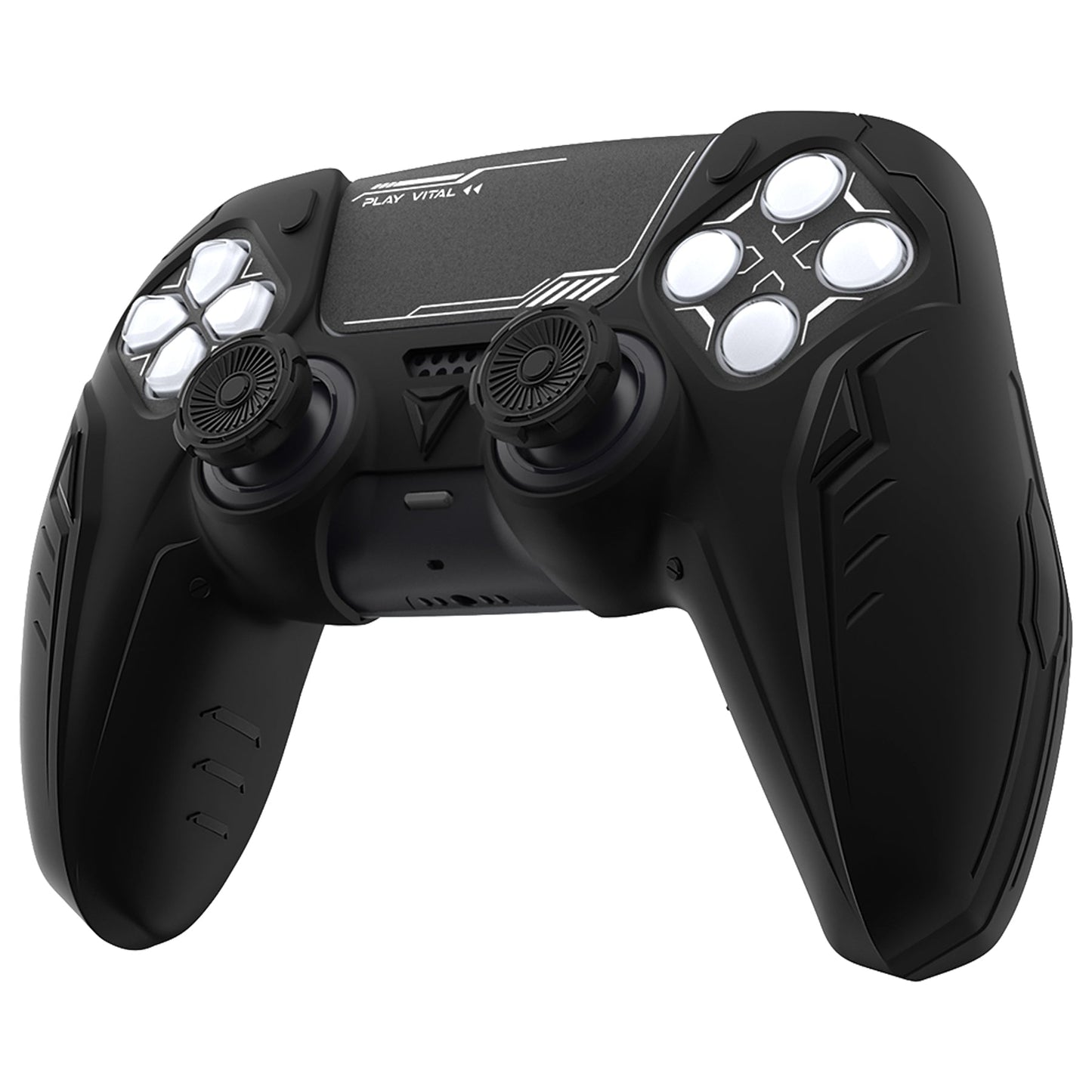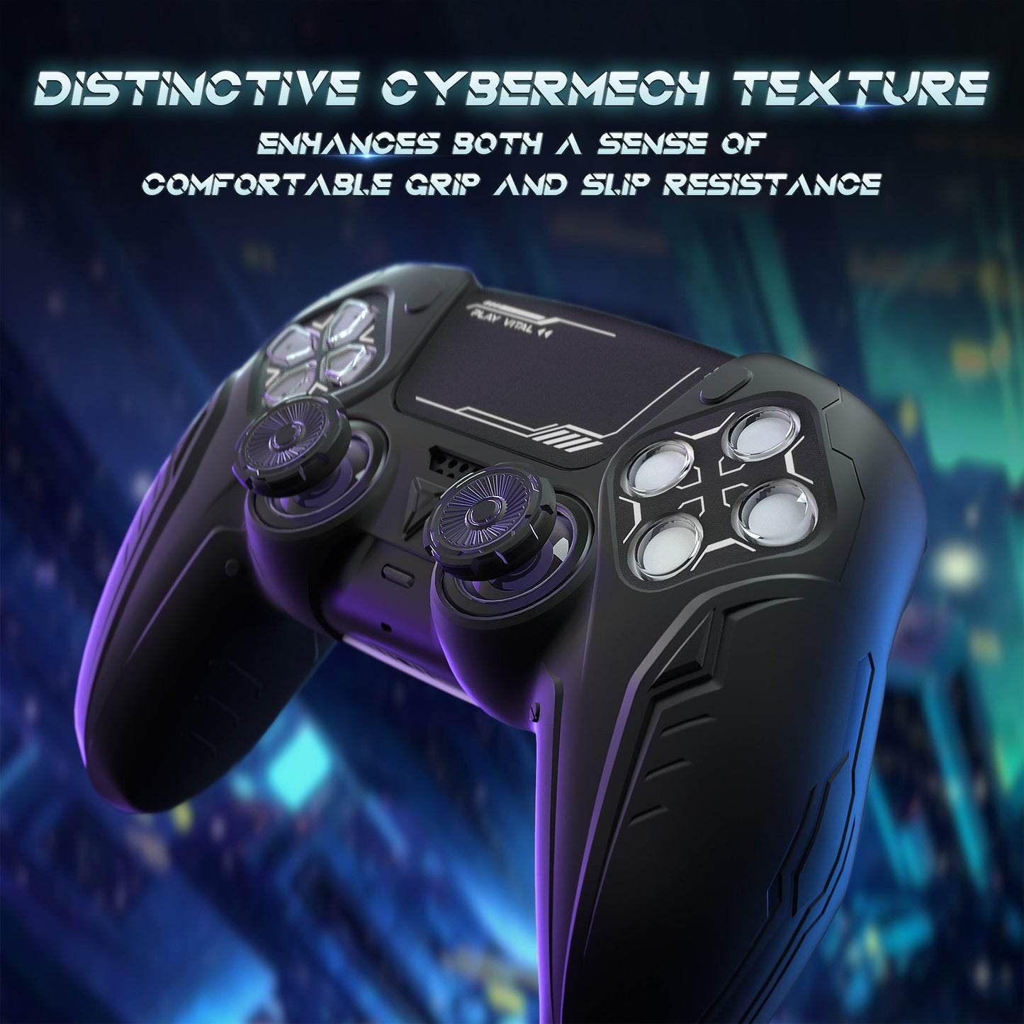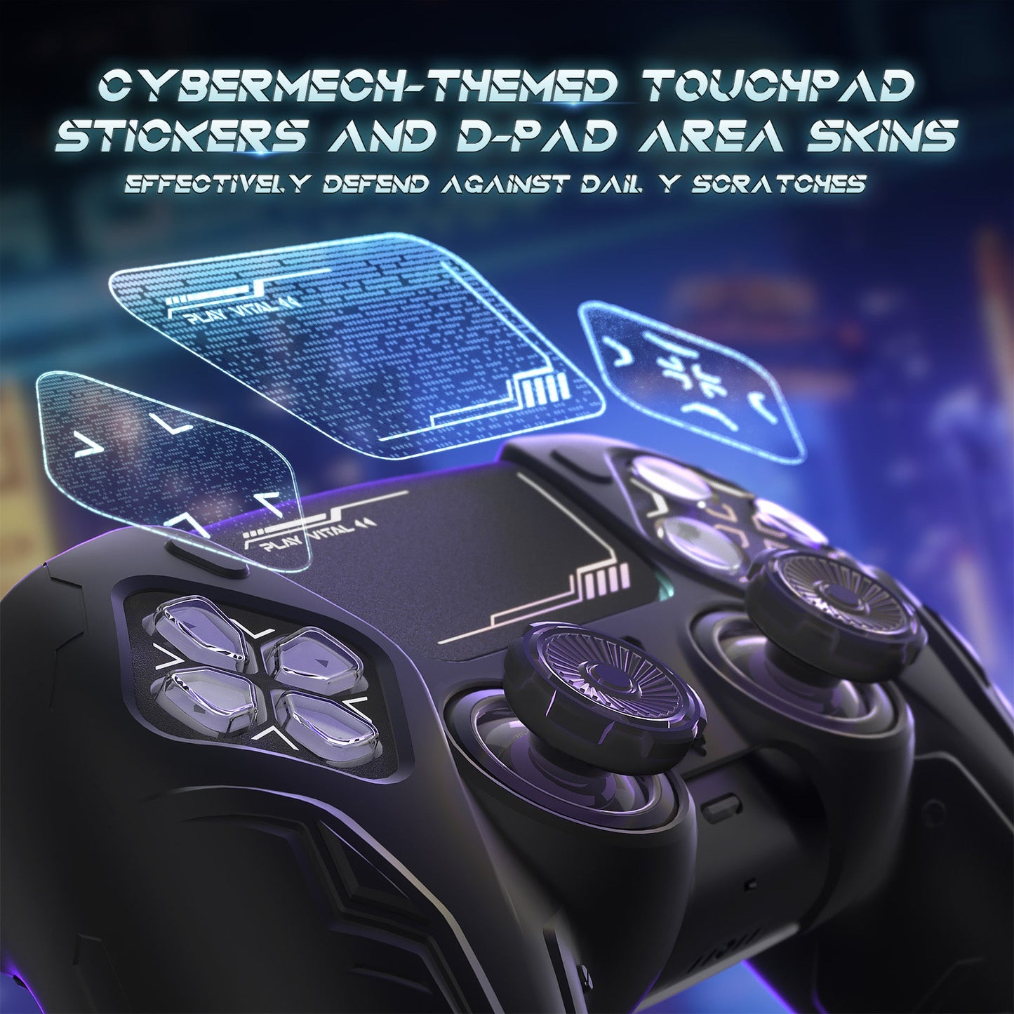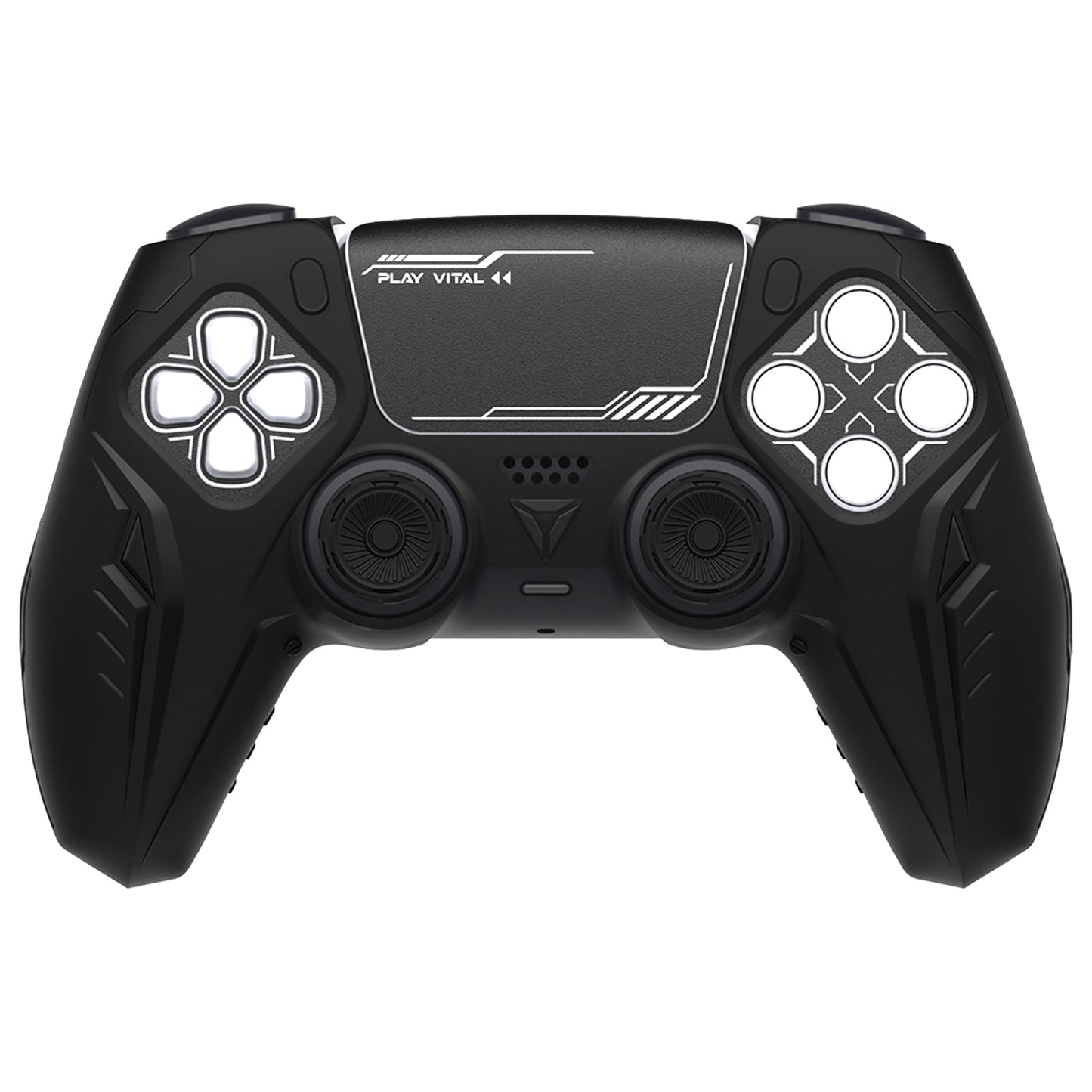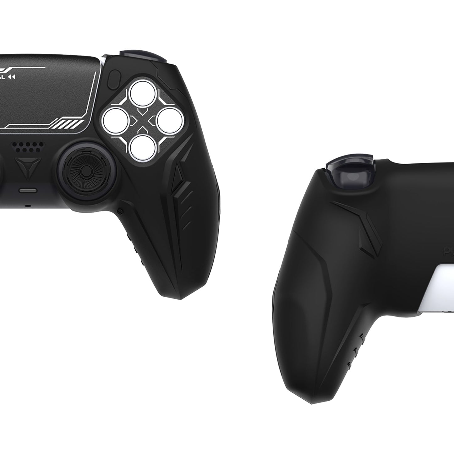 PlayVital 未来的なサイバーメカデザイン シリコングリップスキン サムグリップ付き PS5 ワイヤレスコントローラー用 PS5 公式充電ドック対応 【ブラック】