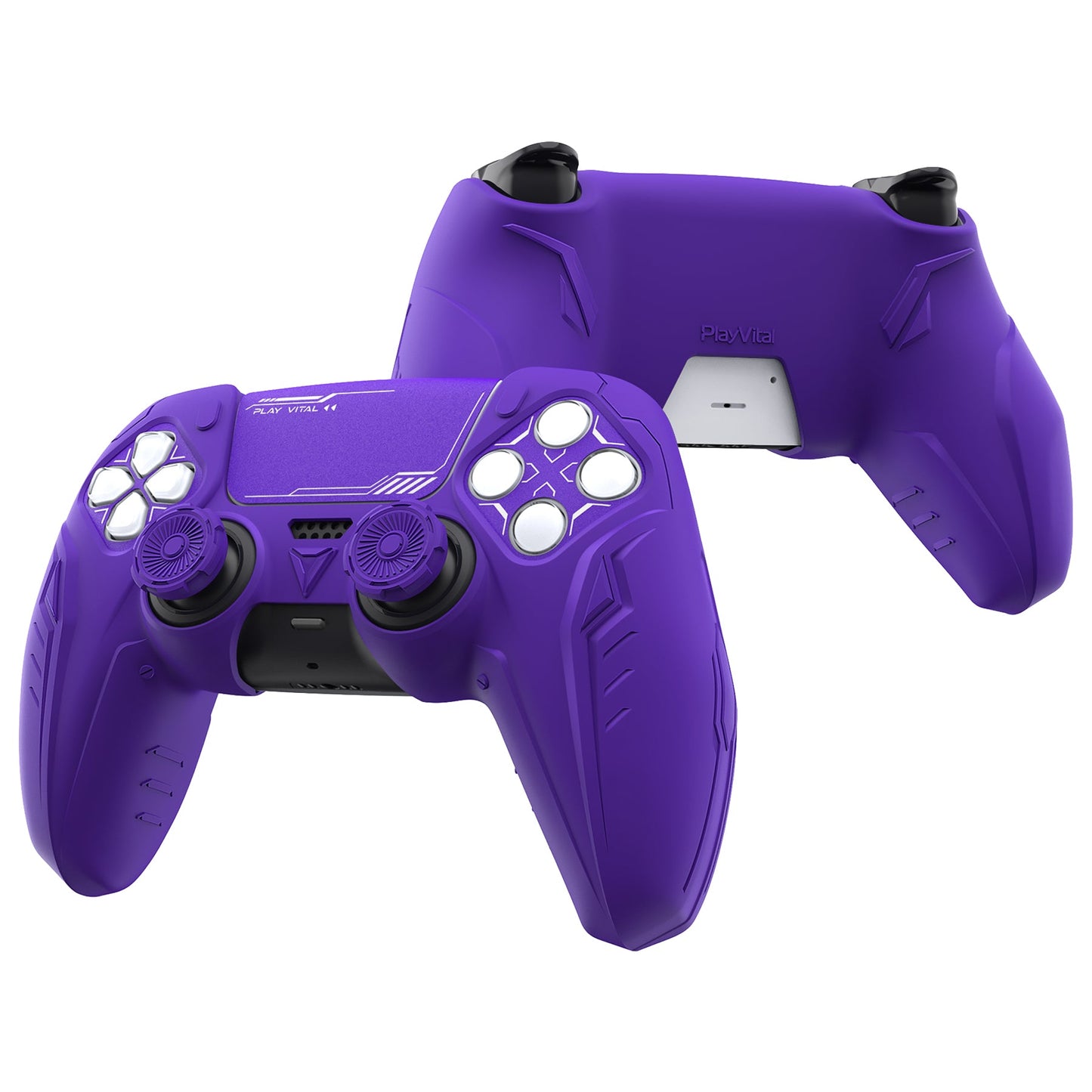 PlayVital 未来的なサイバーメカデザイン シリコングリップスキン サムグリップ付き PS5 ワイヤレスコントローラー用 PS5 公式充電ドック対応 【パープル】
