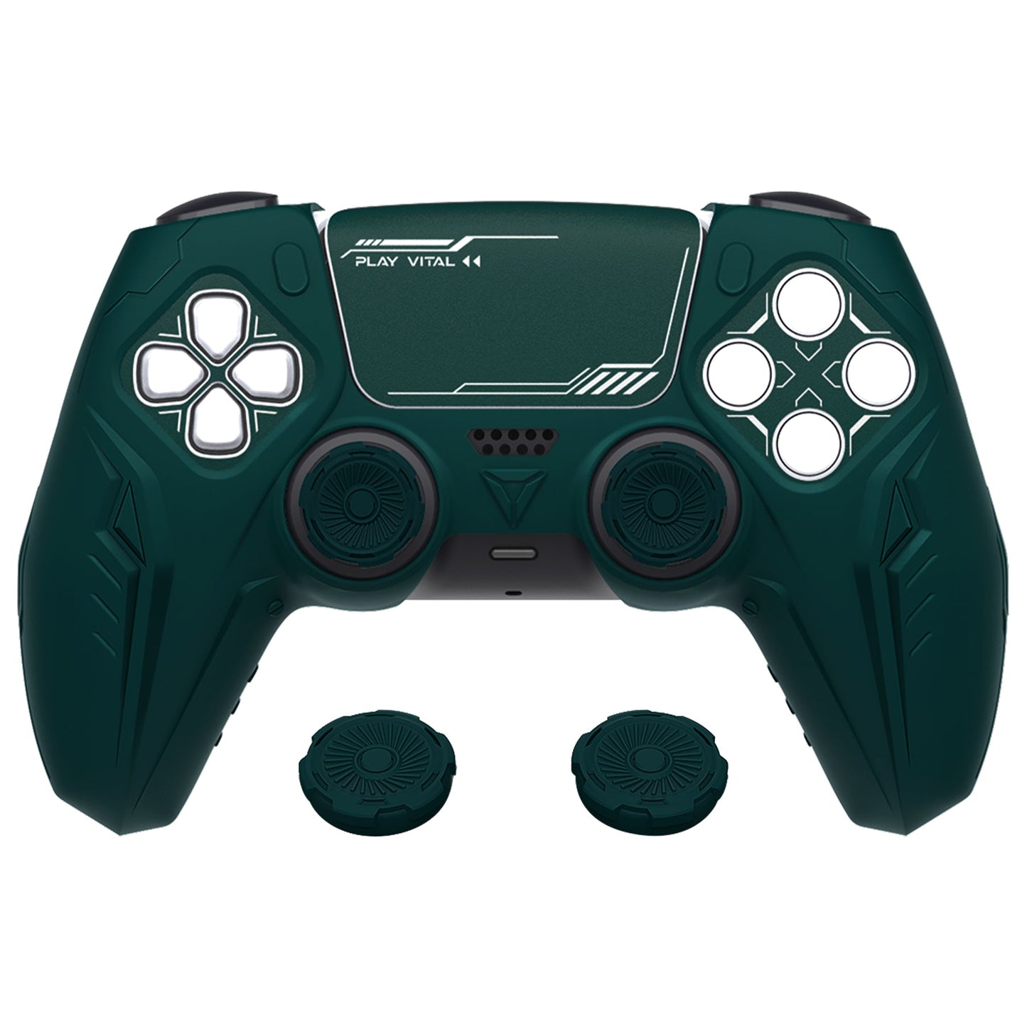 PlayVital 未来的なサイバーメカデザイン シリコングリップスキン サムグリップ付き PS5 ワイヤレスコントローラー用 PS5 公式充電ドック対応 【レーシンググリーン】