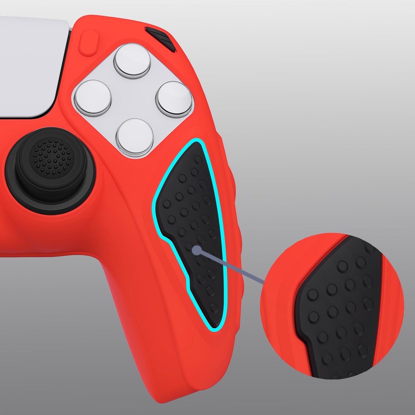 PlayVital Knight Edition 滑り止めシリコンカバースキン サムグリップキャップ付き PS5 ワイヤレスコントローラー用【赤やブラック】