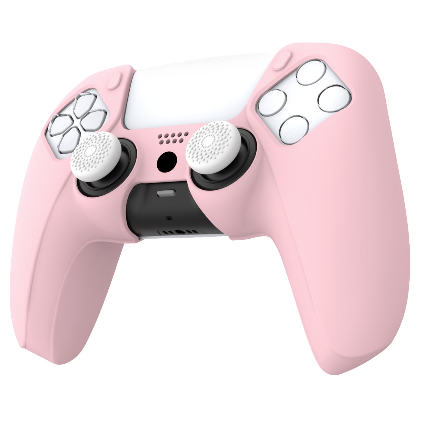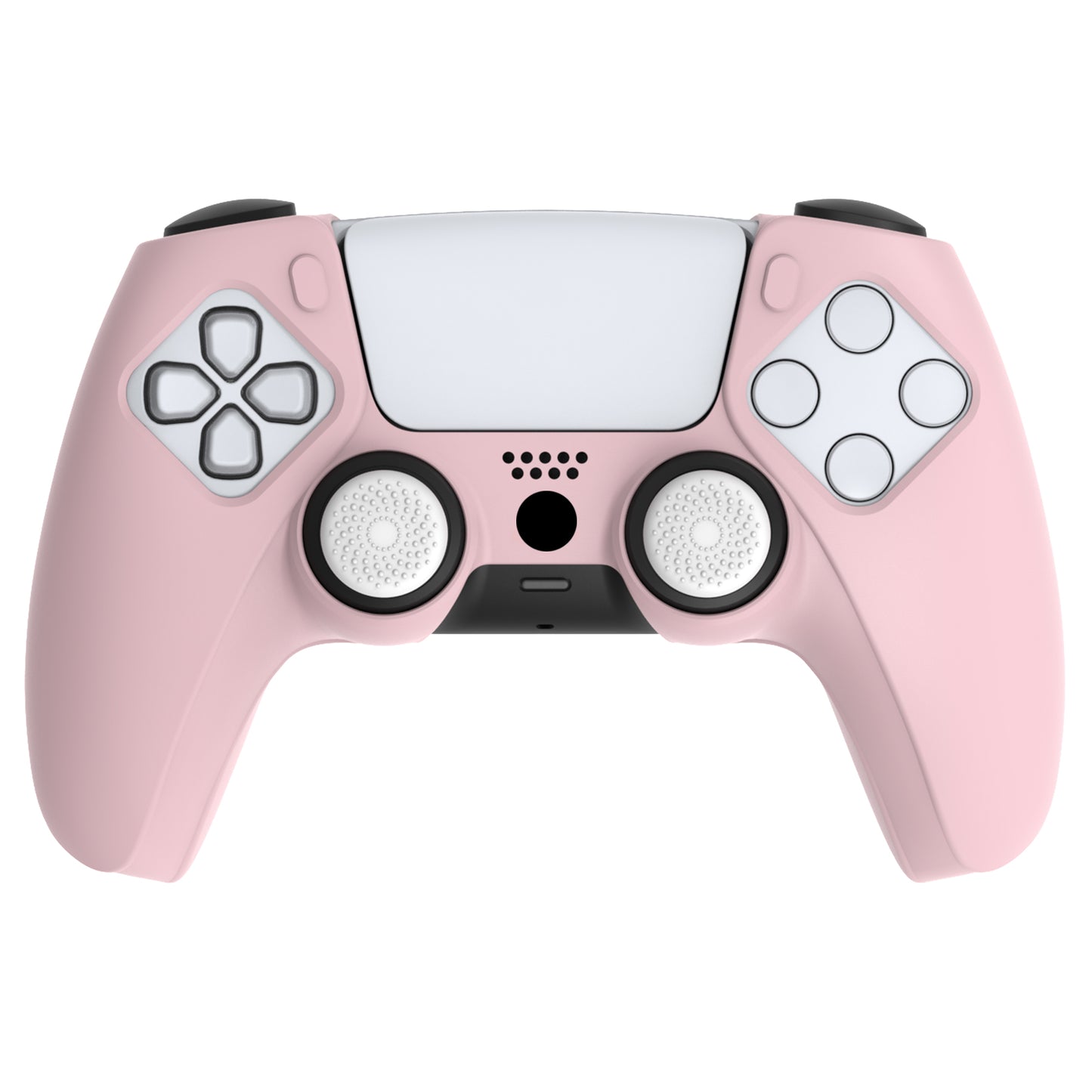 PlayVital Pure シリーズ ドッキング可能モデル 滑り止めシリコンカバースキン 親指グリップキャップ付き PS5 ワイヤレスコントローラー用 - 充電ステーション対応 【ブロッサムピンク】