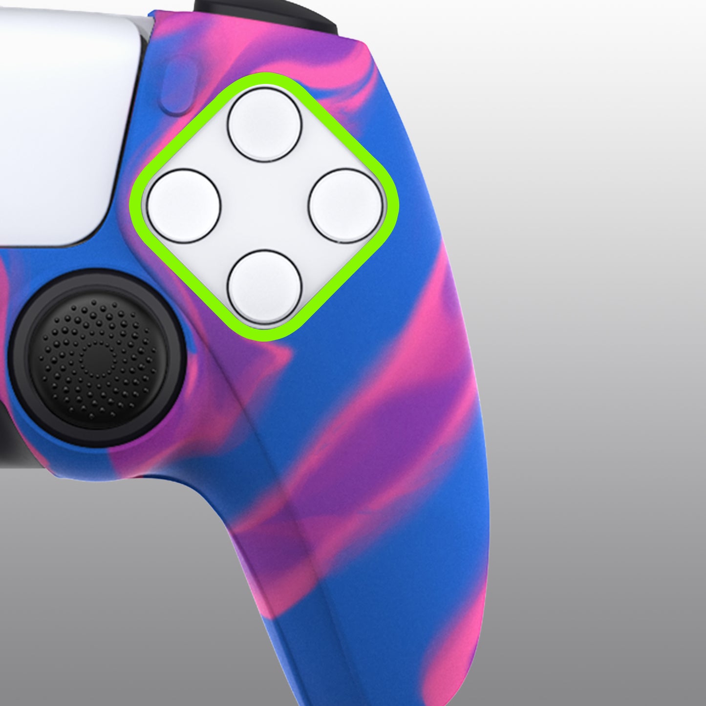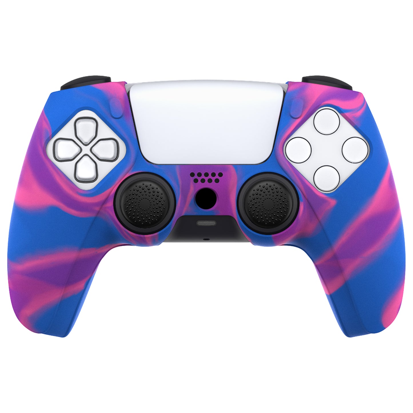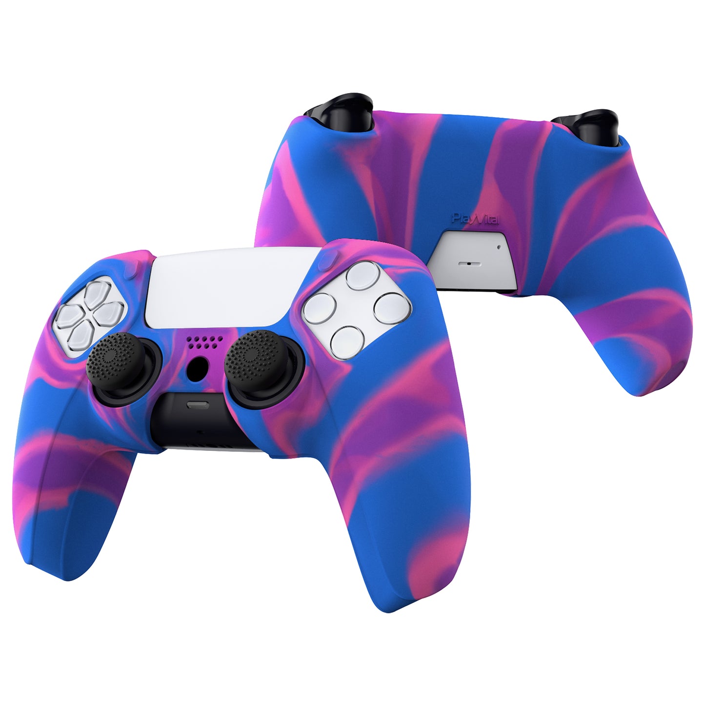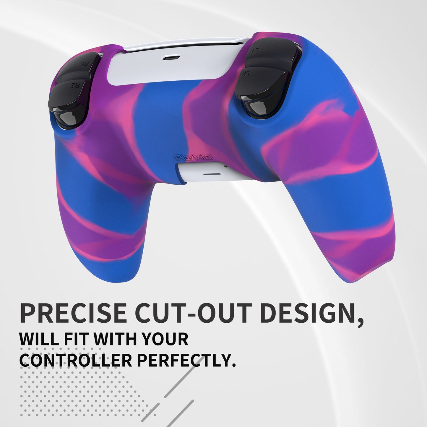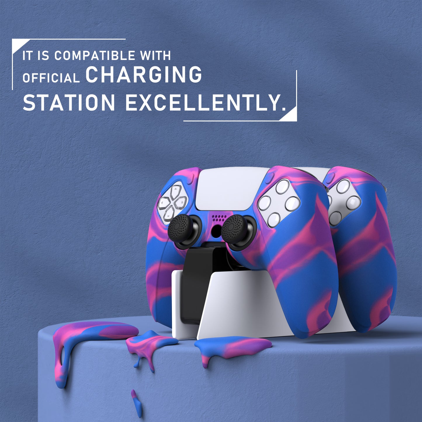 PlayVital Pure シリーズ ドッキング可能モデル 滑り止めシリコンカバースキン 親指グリップキャップ付き PS5 ワイヤレスコントローラー用 - 充電ステーション対応 【紫青ピンク混色】