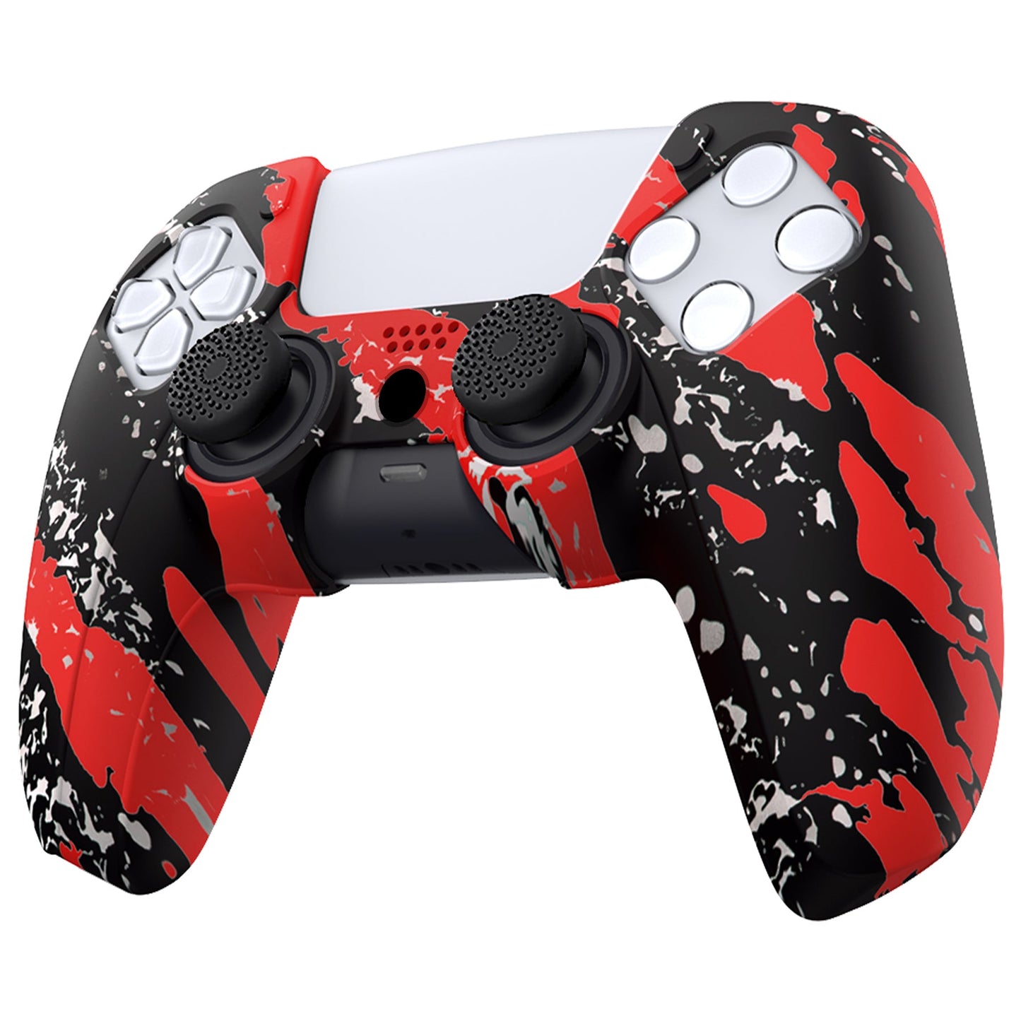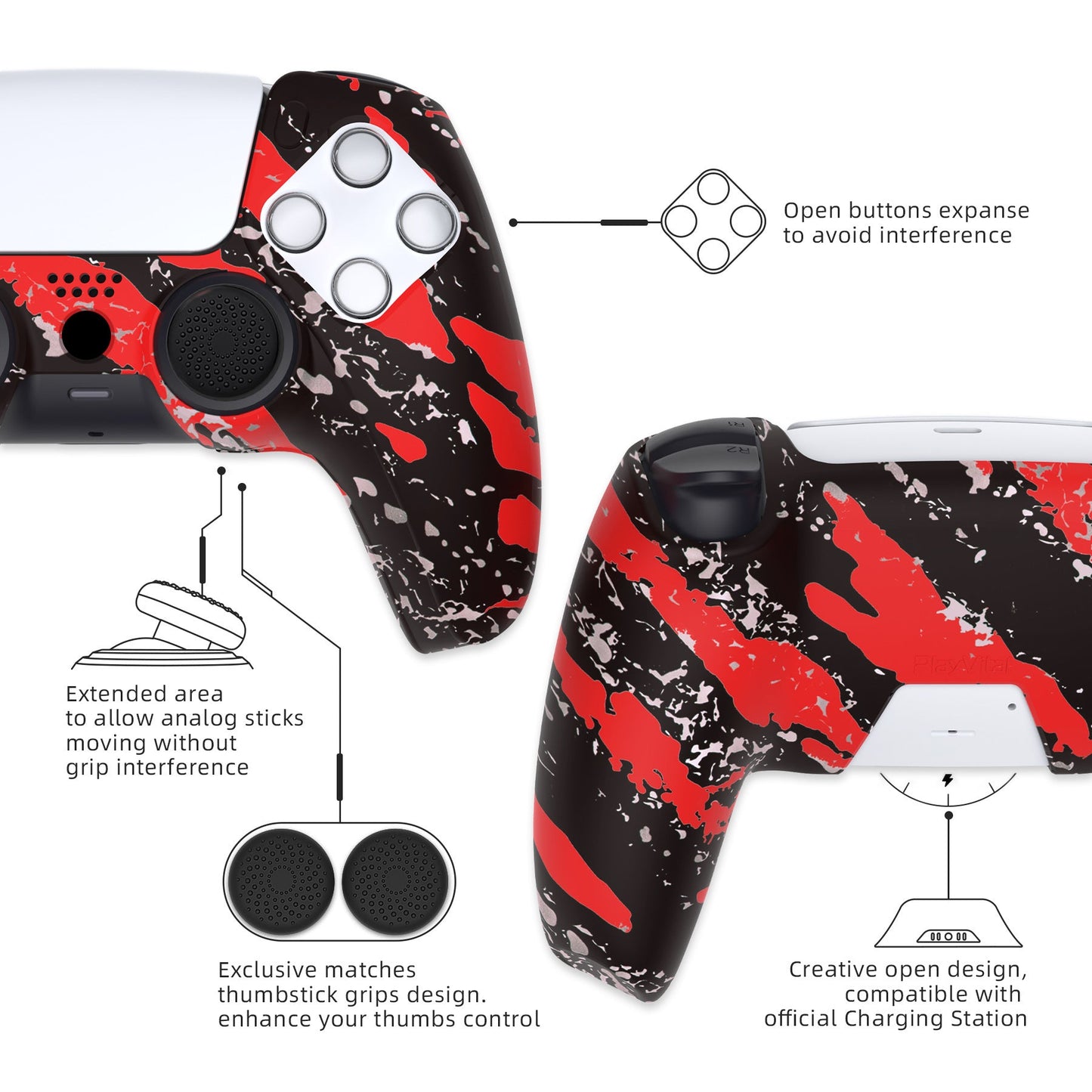 PlayVital Pure シリーズ ドッキング可能モデル 滑り止めシリコンカバースキン 親指グリップキャップ付き PS5 ワイヤレスコントローラー用 - 充電ステーション対応 【レッドスプラッシュ】