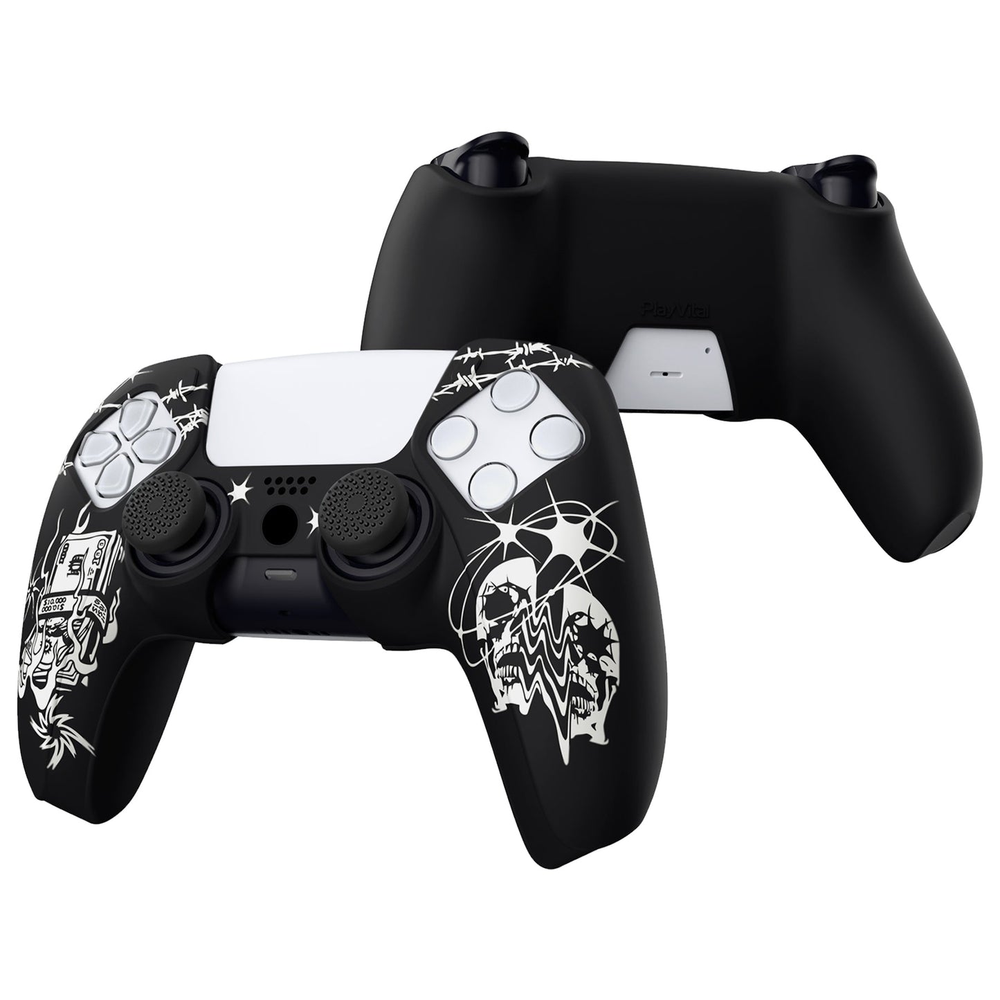 PlayVital Pure シリーズ ドッキング可能モデル 滑り止めシリコンカバースキン 親指グリップキャップ付き PS5 ワイヤレスコントローラー用 - 充電ステーション対応 【罪の源】