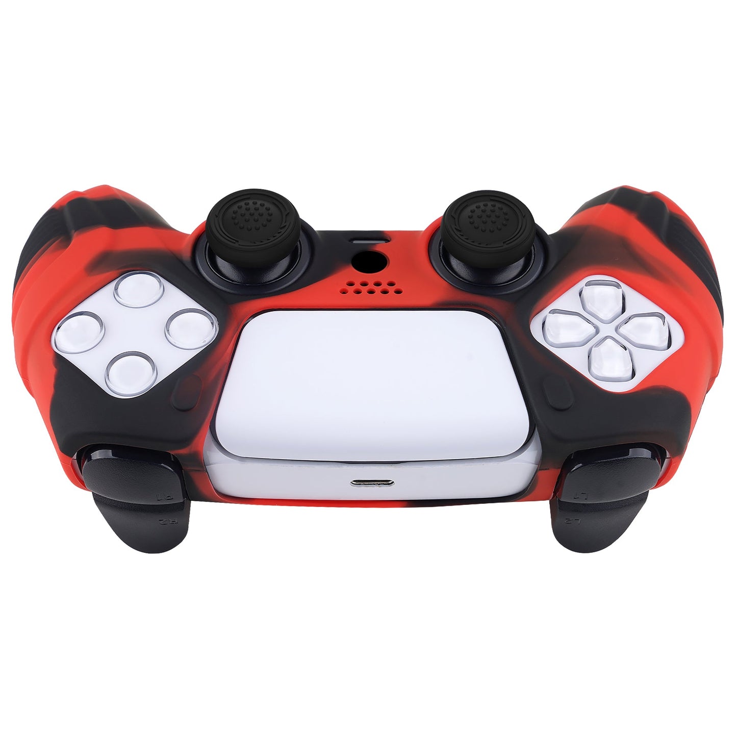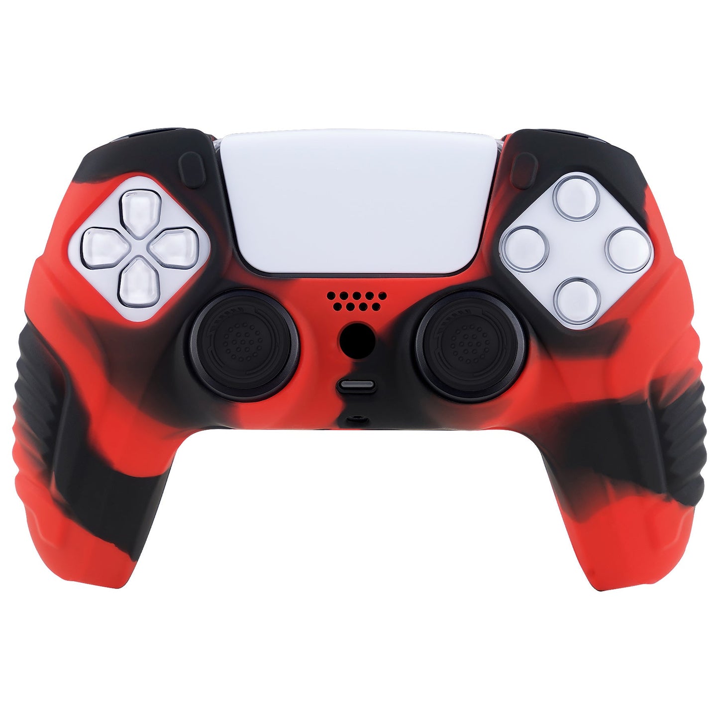 PlayVital Raging Warrior Edition 滑り止めシリコンカバースキン サムスティックキャップ付き PS5 ワイヤレスコントローラー用【レッド&ブラック】