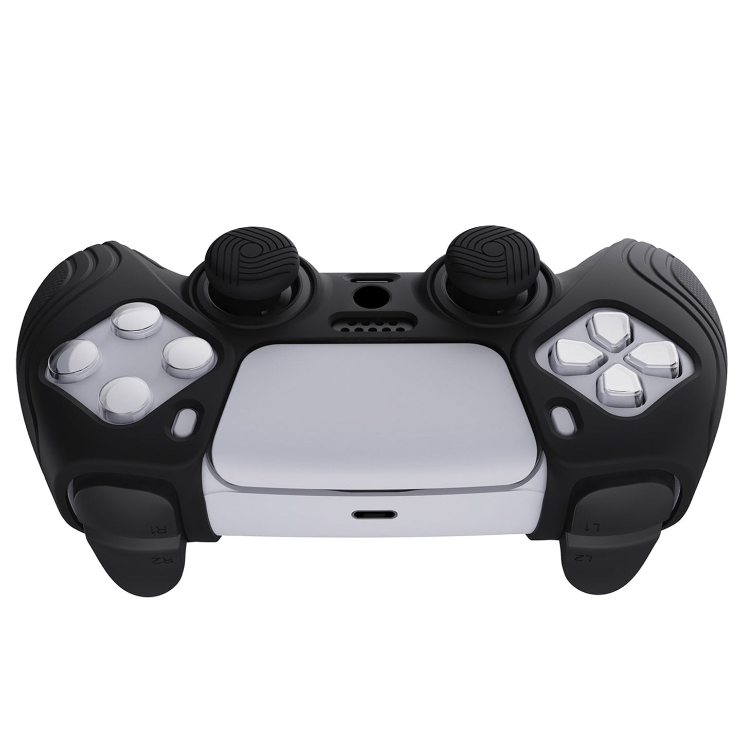 PlayVital Samurai Edition 滑り止めシリコンカバースキン サムグリップキャップ付き PS5 ワイヤレスコントローラー用 【ブラック】
