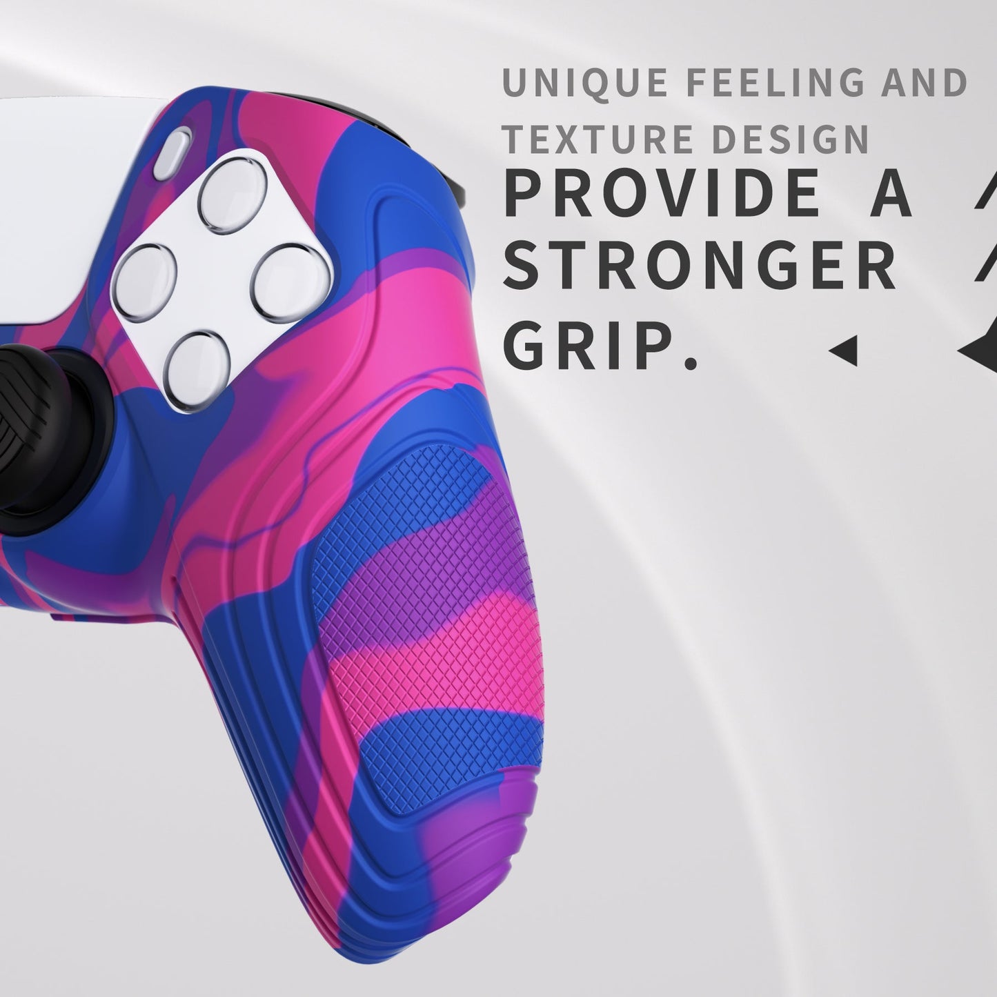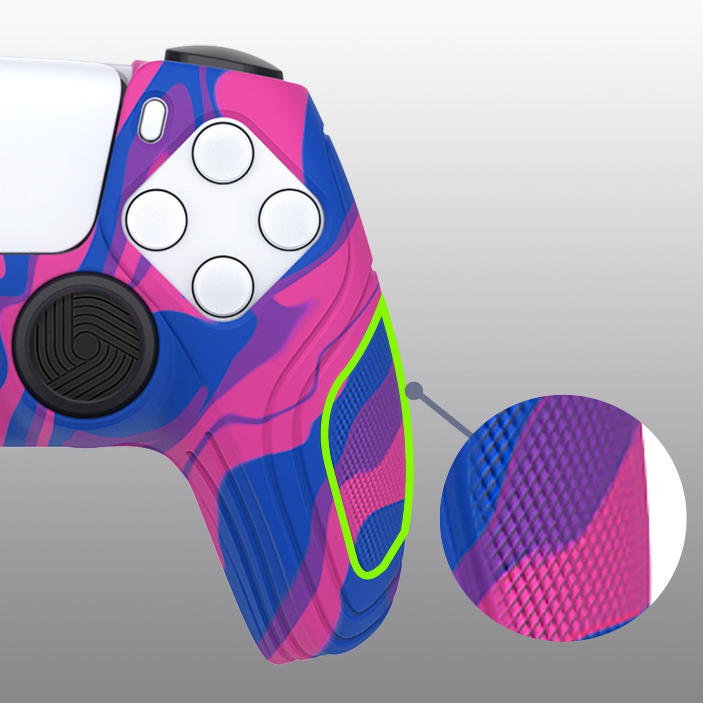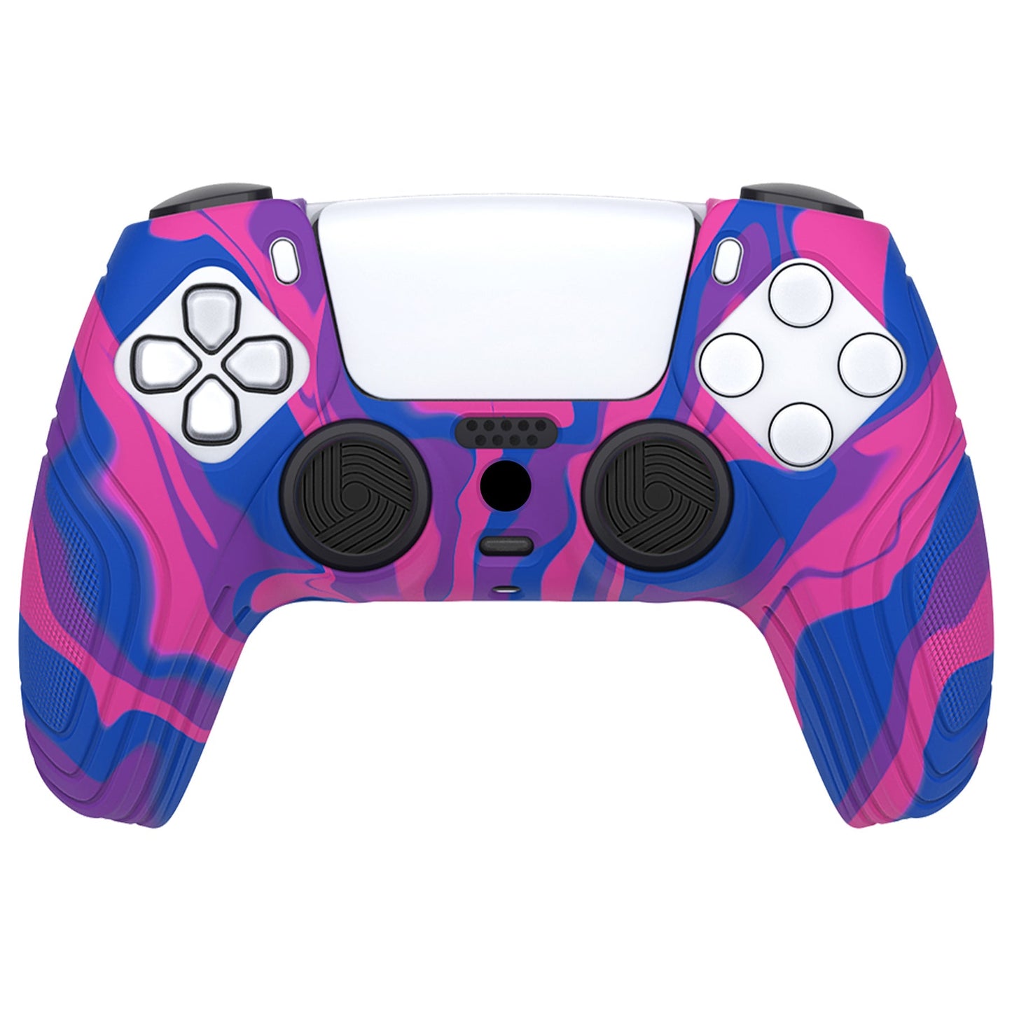 PlayVital Samurai Edition 滑り止めシリコンカバースキン サムグリップキャップ付き PS5 ワイヤレスコントローラー用【ピンク&パープル&ブルー】