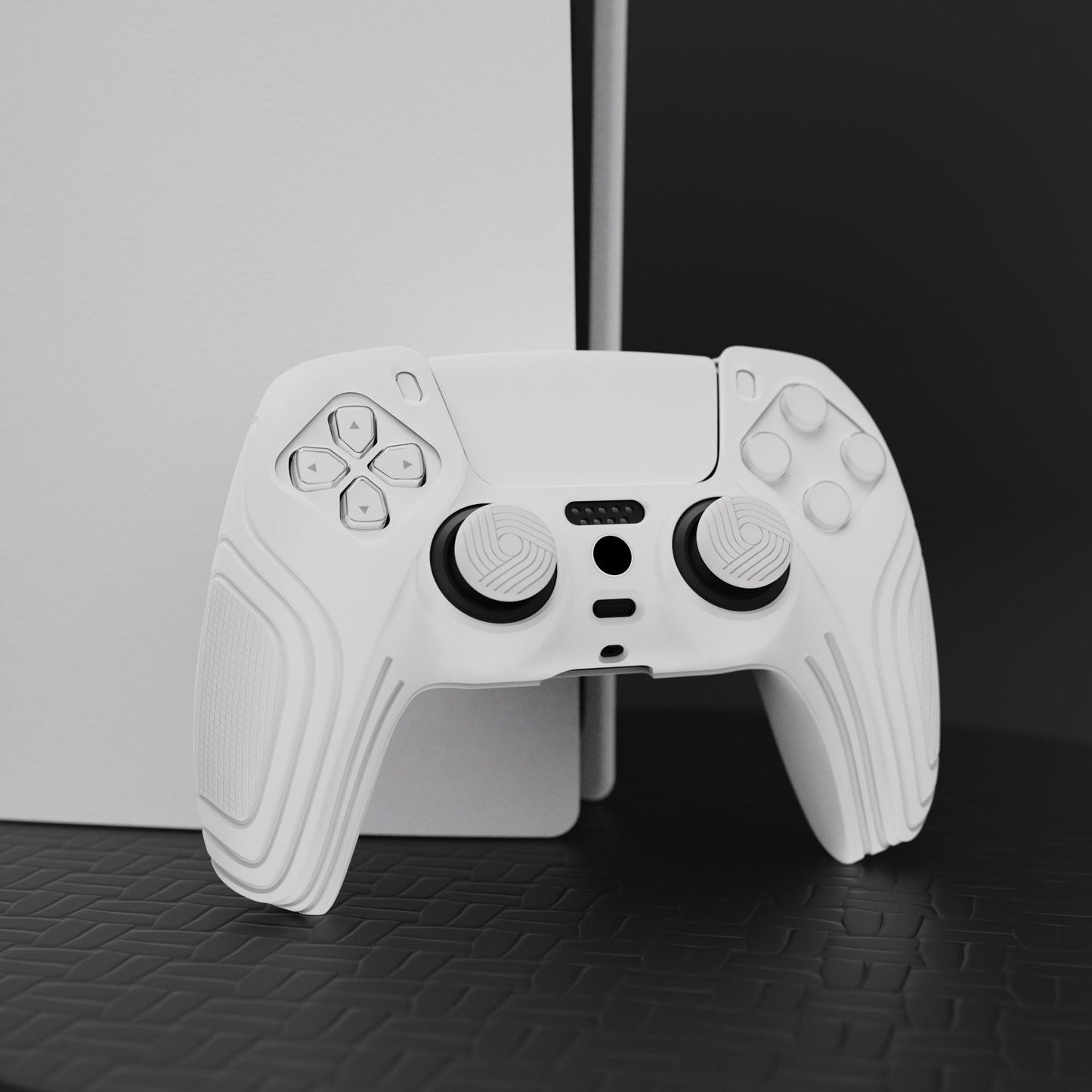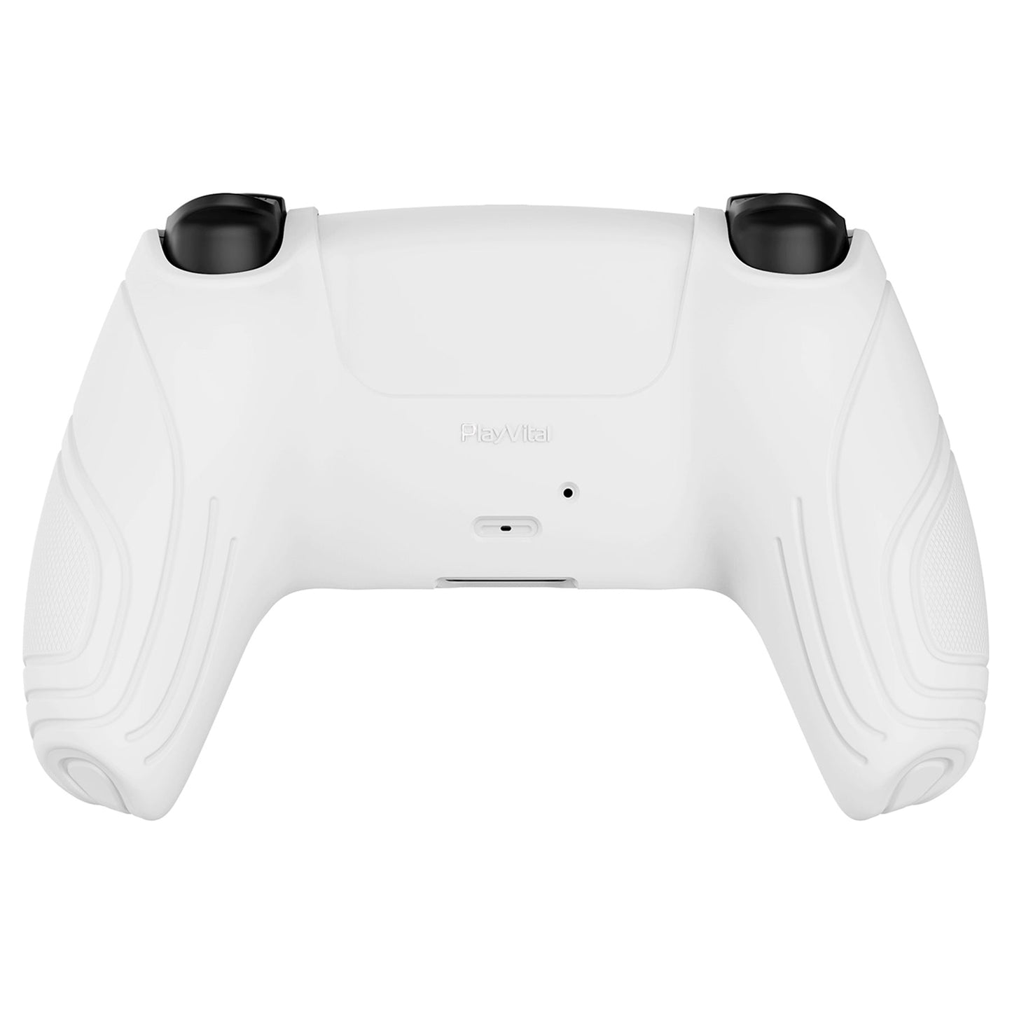 PlayVital Samurai Edition 滑り止めシリコンカバースキン サムグリップキャップ付き PS5 ワイヤレスコントローラー用【ホワイト】