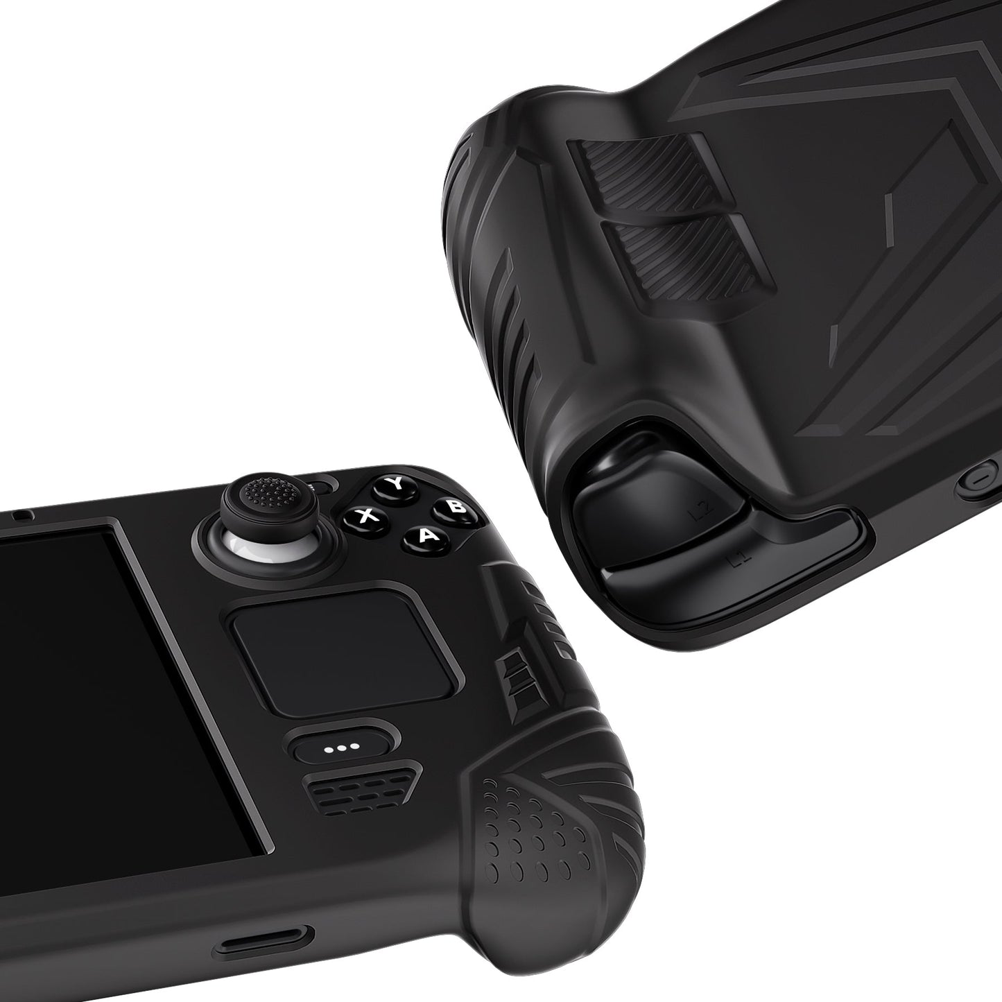 PlayVital Armor シリーズ ソフト シリコン ケース プロテクター 親指グリップ キャップ付き Steam Deck LCD 用 - バックボタン強化設計 【ブラック】
