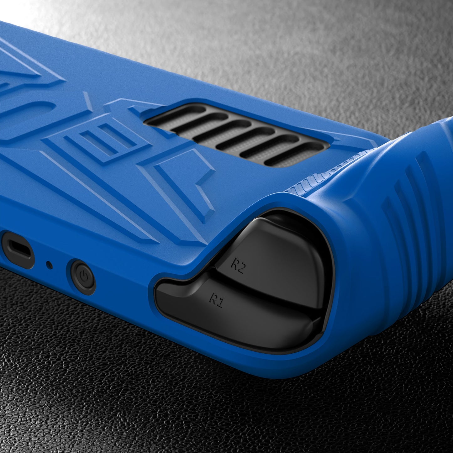 PlayVital Armor シリーズ ソフト シリコン ケース プロテクター 親指グリップ キャップ付き Steam Deck LCD 用 - バックボタン強化設計【ブルー】