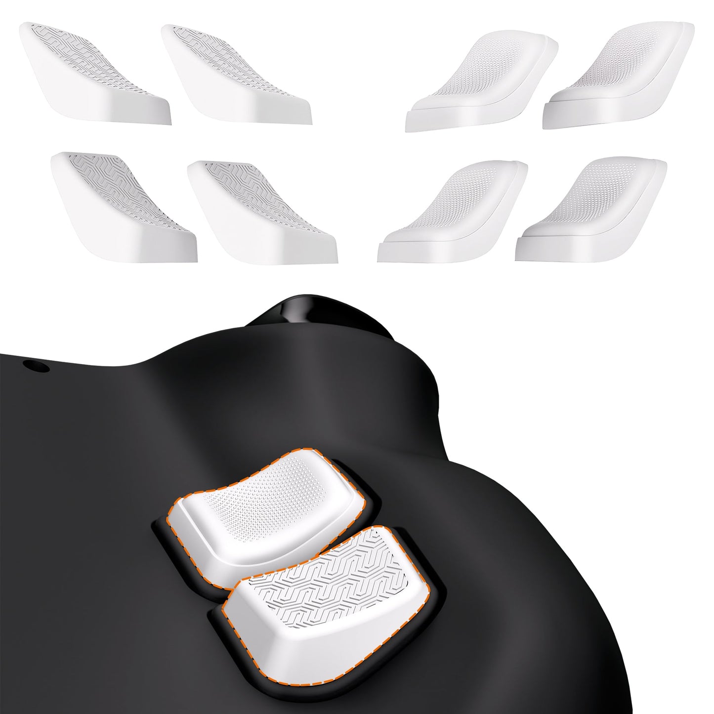 1. バックボタン強化パッドの外観の違いにご注意ください。R4 L4とR5 L5の形状は同じではありません。各パーツは対応するボタンにしか取り付けることができませんので、違いに注意して取り付けてください。